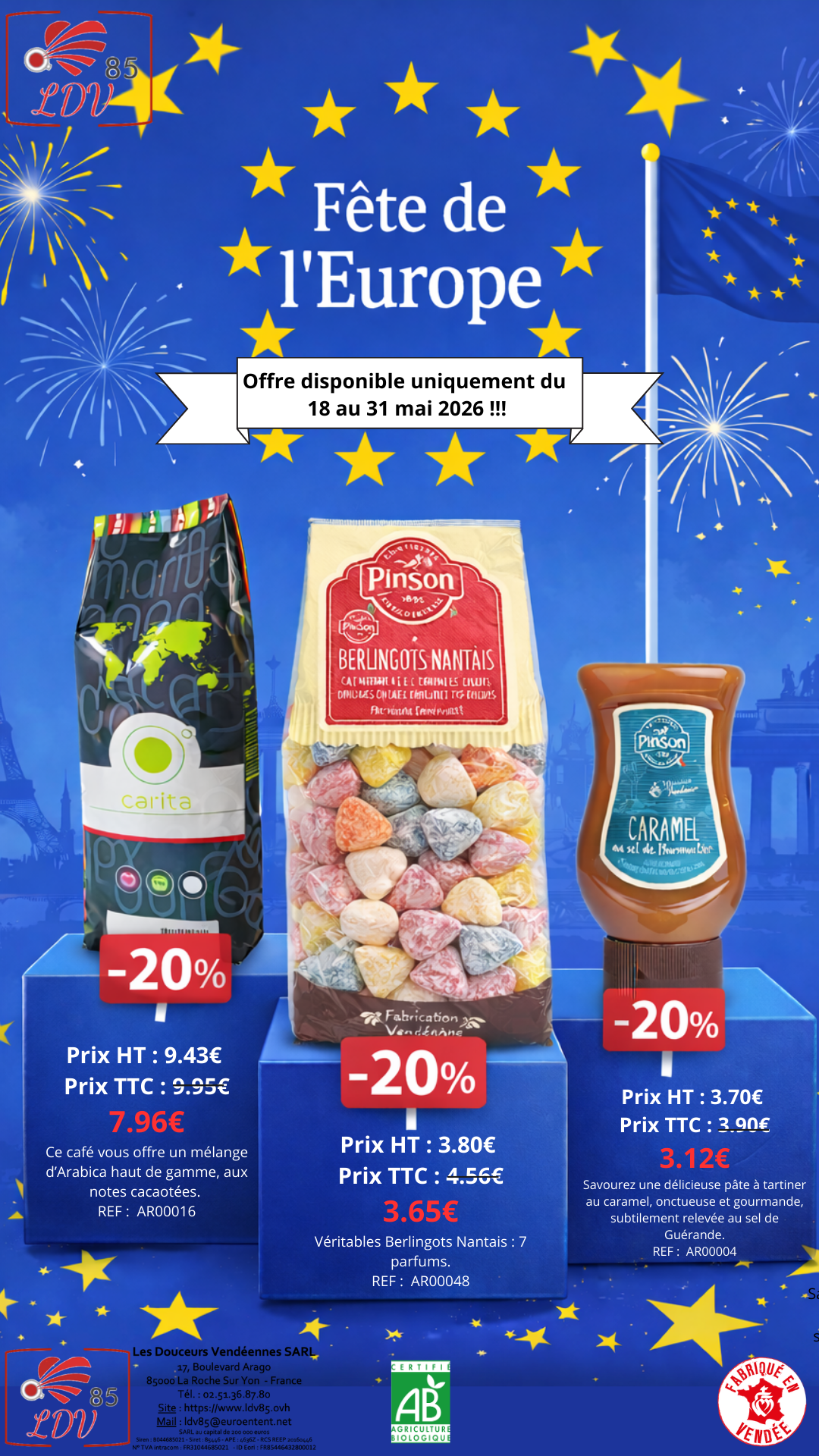 Nos étudiants accompagnent le stagiaire dans la construction et la diffusion d’une offre commerciale pour la Fête de l’Europe, la fête des mères, la fête des Pères, la fête de la musique ou la journée mondiale des grands-parents et des personnes âgées.